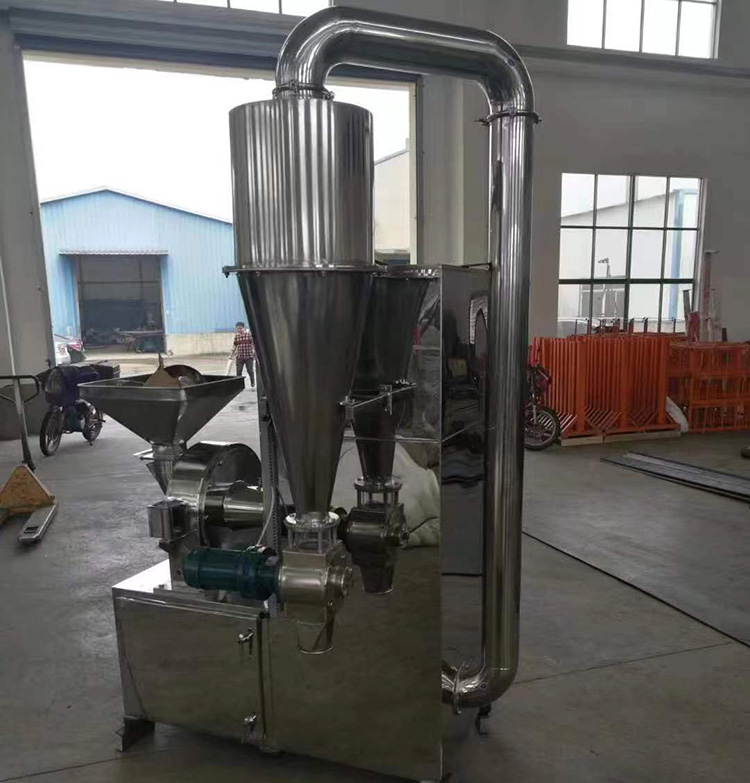 利用活動(dòng)齒盤和固定齒盤間的相對(duì)運(yùn)動(dòng),使物料經(jīng)齒沖擊、摩擦及物料彼此間,沖擊而獲得粉碎。粉碎好的物料經(jīng)旋轉(zhuǎn)離心力的作用自動(dòng)進(jìn)入捕食袋,粉塵由吸塵箱經(jīng)布袋過(guò)濾回收。