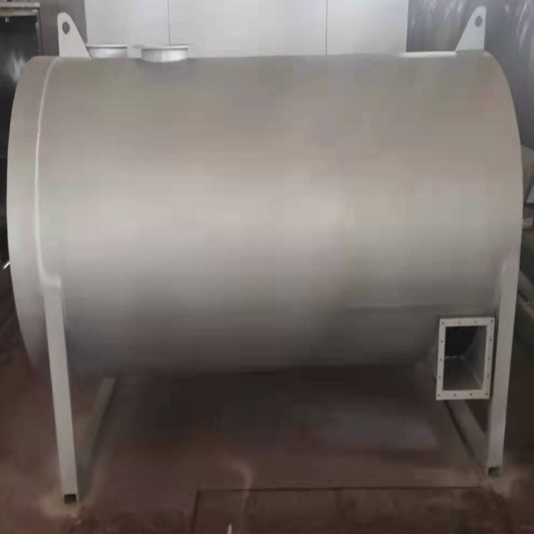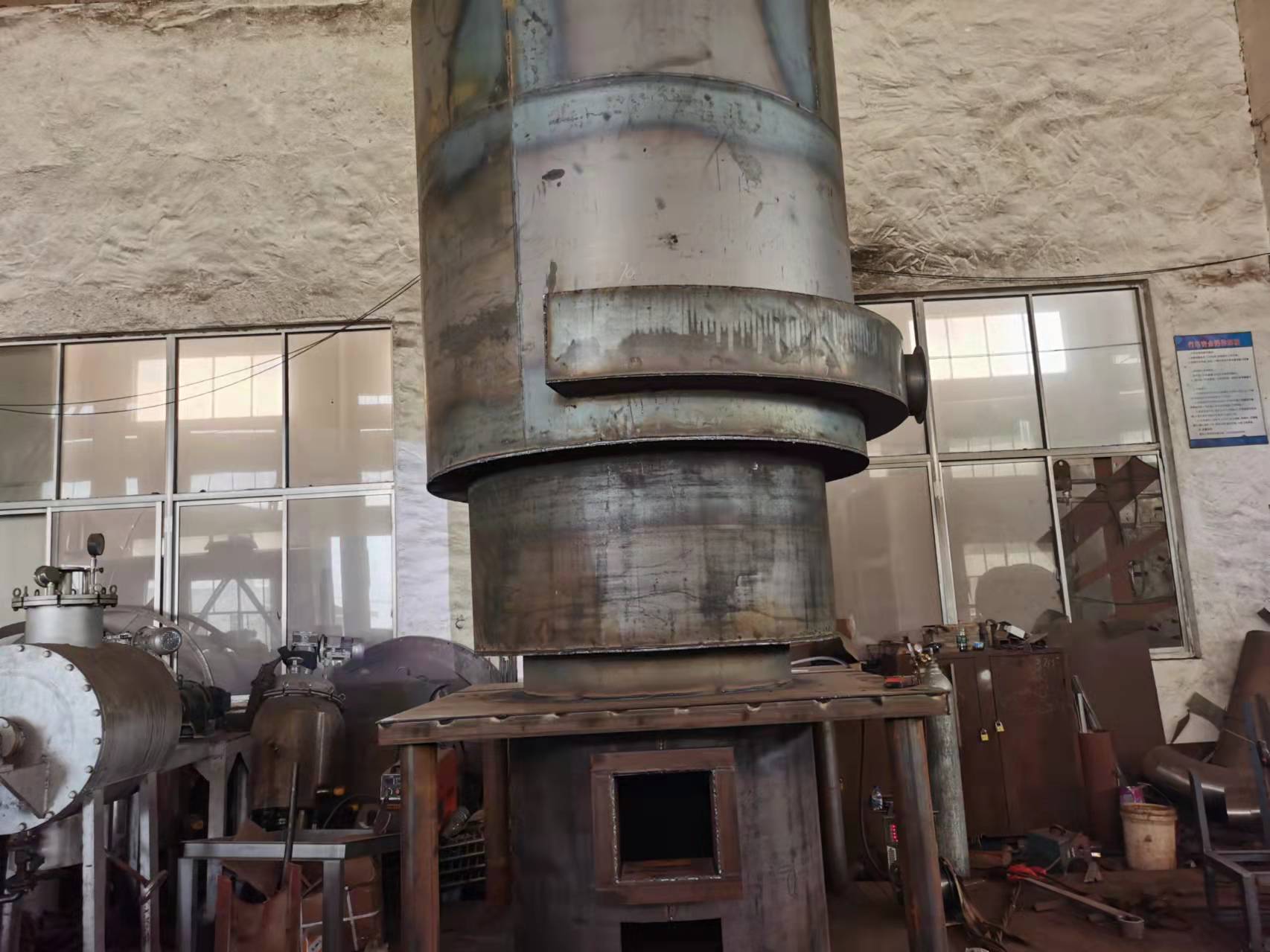 該熱風(fēng)爐的燃燒室與換熱器合為一體,采用全鋼板多層套筒多頭螺旋槽片式結(jié)構(gòu),其爐心下部為燃燒室,上部和四周為環(huán)行換熱器,空氣和煙氣均是雙回程,各行其道進(jìn)行換熱。為了提高熱效率,采用多頭螺旋槽片換熱技術(shù)和紊流原理,減薄層流厚度,使空氣和煙氣在行進(jìn)中不斷交換旋向,大大強(qiáng)化了換熱效果。主要工作過(guò)程:燃煤在爐膛內(nèi)產(chǎn)生高溫?zé)煔?,在風(fēng)機(jī)的作用下進(jìn)入煙環(huán),與外側(cè)空氣進(jìn)行熱交換后,經(jīng)煙道由煙囪排出,冷空氣由鼓風(fēng)機(jī)吹入熱風(fēng)爐外殼,經(jīng)爐頂流入爐膛外側(cè)空氣環(huán),由熱風(fēng)出口管道供給潔凈熱風(fēng)的設(shè)備。