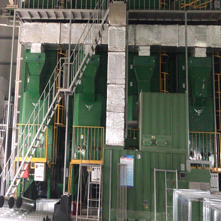 熱風(fēng)爐所使用的燃生物質(zhì)由上料斗裝置裝入進(jìn)料斗,再由條爐排將生物質(zhì)帶入燃燒段。在燃燒段中生物質(zhì)均勻燃燒,燃燒后的生物質(zhì)渣由出渣口排出爐外,而燃燒后的高溫?zé)煔庥梢L(fēng)機(jī)帶至換熱段,在換熱段中與由主風(fēng)機(jī)送入的冷空氣進(jìn)行熱交換,換熱后的煙氣由引風(fēng)機(jī)送至煙囪排出。而經(jīng)過熱后的熱空氣經(jīng)過管道送至用熱設(shè)備。在此過程中,數(shù)字式溫度顯示控制器對熱風(fēng)出口溫度、爐內(nèi)溫度以及用熱設(shè)備溫度進(jìn)行顯示并通過對風(fēng)機(jī)及爐排的開關(guān)等方法來自動調(diào)節(jié)烘房溫度,使之符合工藝要求。燃燒設(shè)備采用輕型鏈條爐排,由多級或無級調(diào)速機(jī)構(gòu)傳動,操作方便調(diào)節(jié)靈活,由于沿?zé)犸L(fēng)爐縱向不同燃燒區(qū)段的燃燒強(qiáng)度不同,所需風(fēng)量也不同,所以沿縱向爐排下設(shè)有獨(dú)立風(fēng)室,空氣由鼓風(fēng)機(jī)鼓入總風(fēng)道后,經(jīng)過調(diào)風(fēng)機(jī)構(gòu)進(jìn)入爐排下部各風(fēng)室,各風(fēng)室獨(dú)立配風(fēng),配風(fēng)調(diào)節(jié)精確、燃燒控制合理。